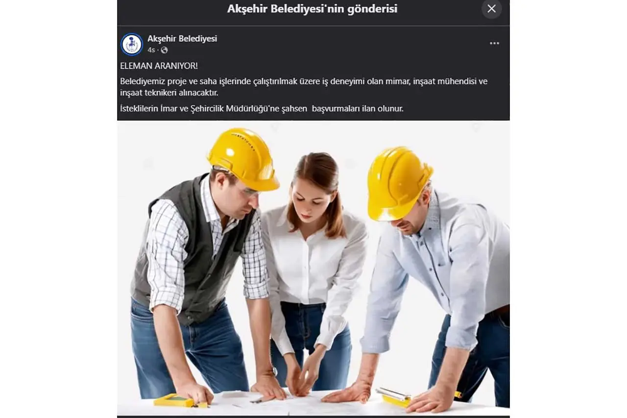 Konya’nın Akşehir Belediyesi, resmi sosyal medya hesabı üzerinden yaptığı duyuruda proje ve saha işlerinde çalıştırılmak üzere mimar, inşaat mühendisi ve inşaat teknikeri alımı yapılacağını açıkladı.