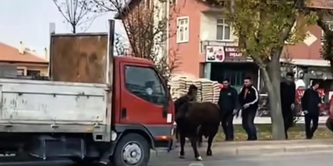 Kontrolden çıkan boğa, bir süre trafikte ilerleyerek araçların durmasına neden oldu. Vatandaşlar, boğayı sakinleştirmek ve yakalamak için yoğun çaba sarf etti.