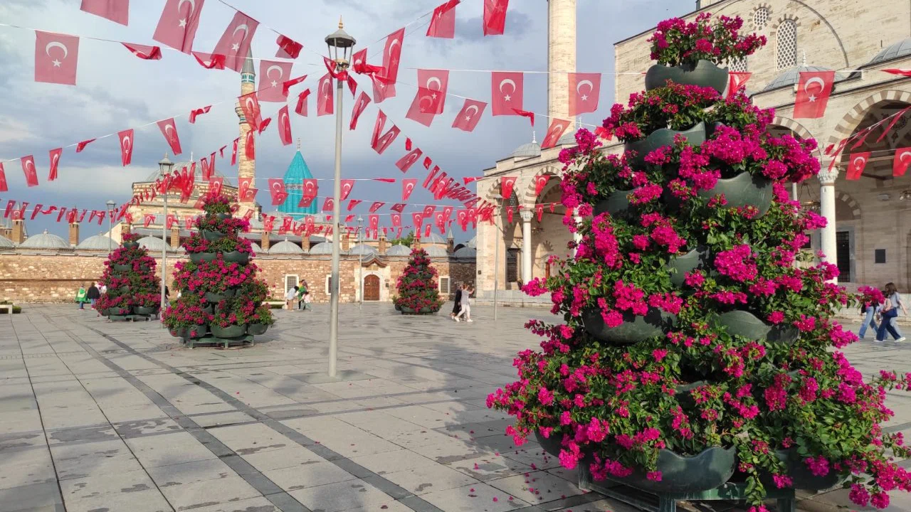 Mevlana Türbesi çevresindeki bu görsel zenginlik, hem ziyaretçilere huzurlu anlar yaşatıyor hem de Konya'nın estetik dokusuna katkı sunuyor.