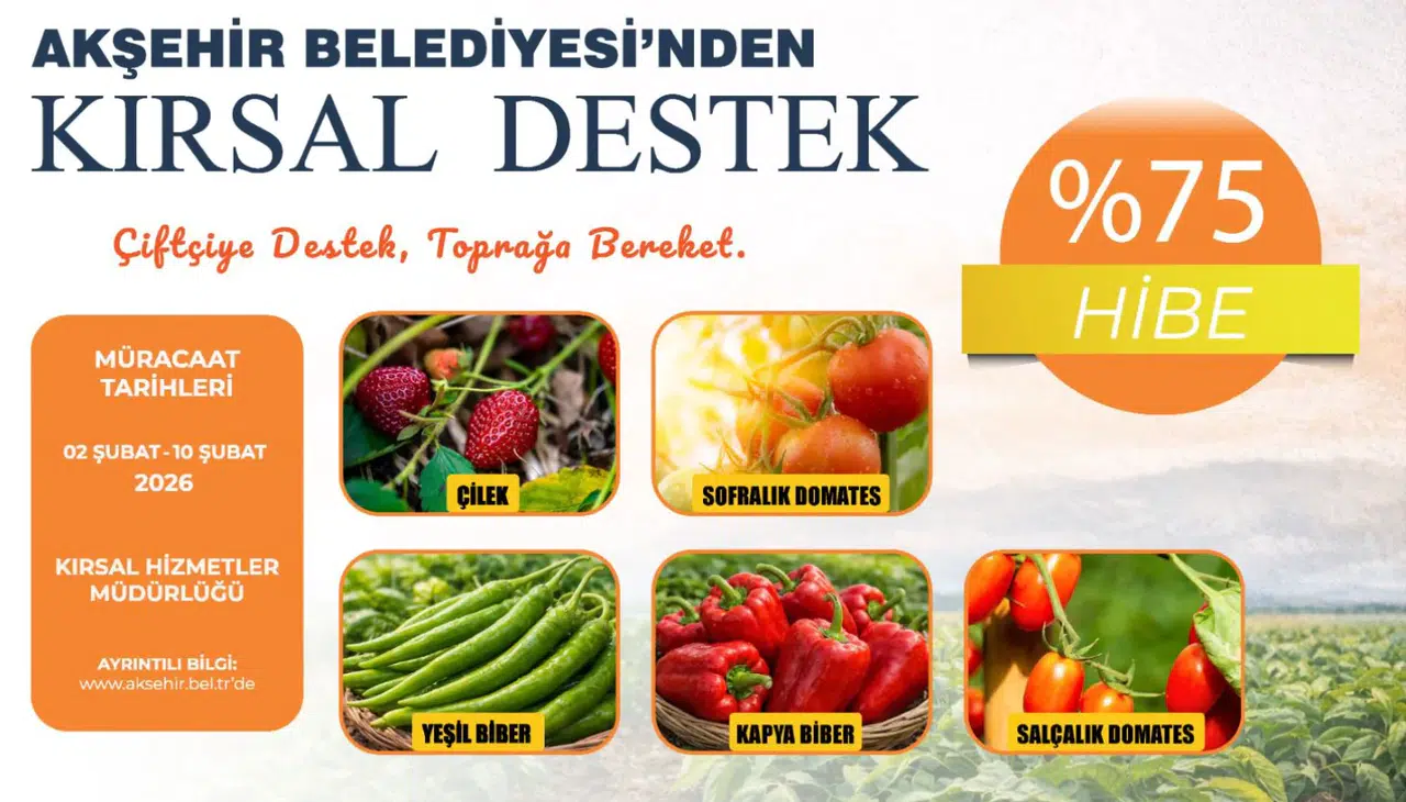 Başvurular 2–10 Şubat 2026 tarihleri arasında Akşehir Belediyesi Kırsal Hizmetler Müdürlüğü’ne yapılabilecek. Programa başvurmak isteyen üreticilerin belirtilen tarihlerde müracaatlarını tamamlamaları gerekiyor.