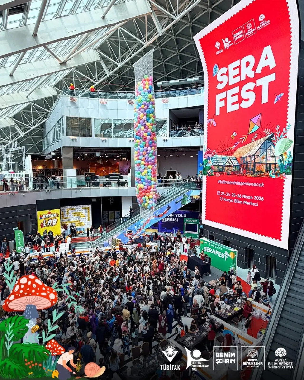 Konya’da düzenlenen SERAFEST kapsamında üç gün boyunca süren etkinlikler yoğun katılımla devam ederken, festivalin son gününe girildi. 26 Nisan Pazar günü sona erecek etkinliklerde ziyaretçiler bilim, doğa ve teknoloji temalı birçok içerikle buluşmaya devam edecek.