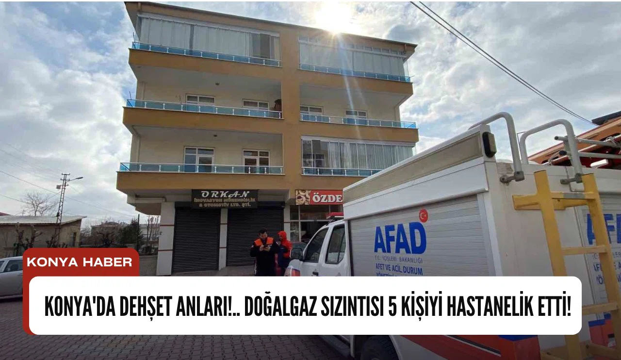 Konya'da bir apartmanda meydana gelen doğalgaz sızıntısı sonucu gazdan etkilenen 5 kişi hastaneye kaldırılarak tedavi altına alındı.