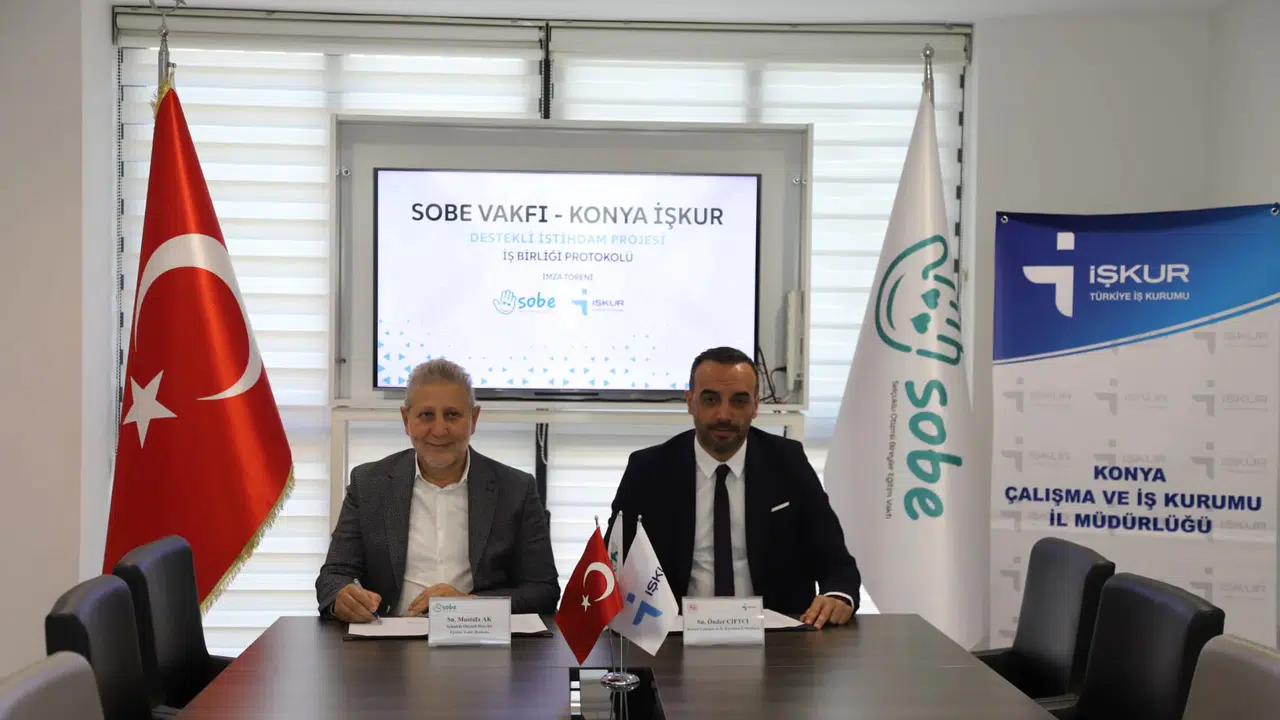 Protokol töreni, Konya Çalışma ve İş Kurumu İl Müdürü Önder Çiftci ile SOBE Vakfı Başkanı Mustafa Ak öncülüğünde gerçekleştirildi. İş birliği kapsamında işverenlere proje geliştirme, başvuru ve izleme-değerlendirme süreçlerinde rehberlik sağlanacak.