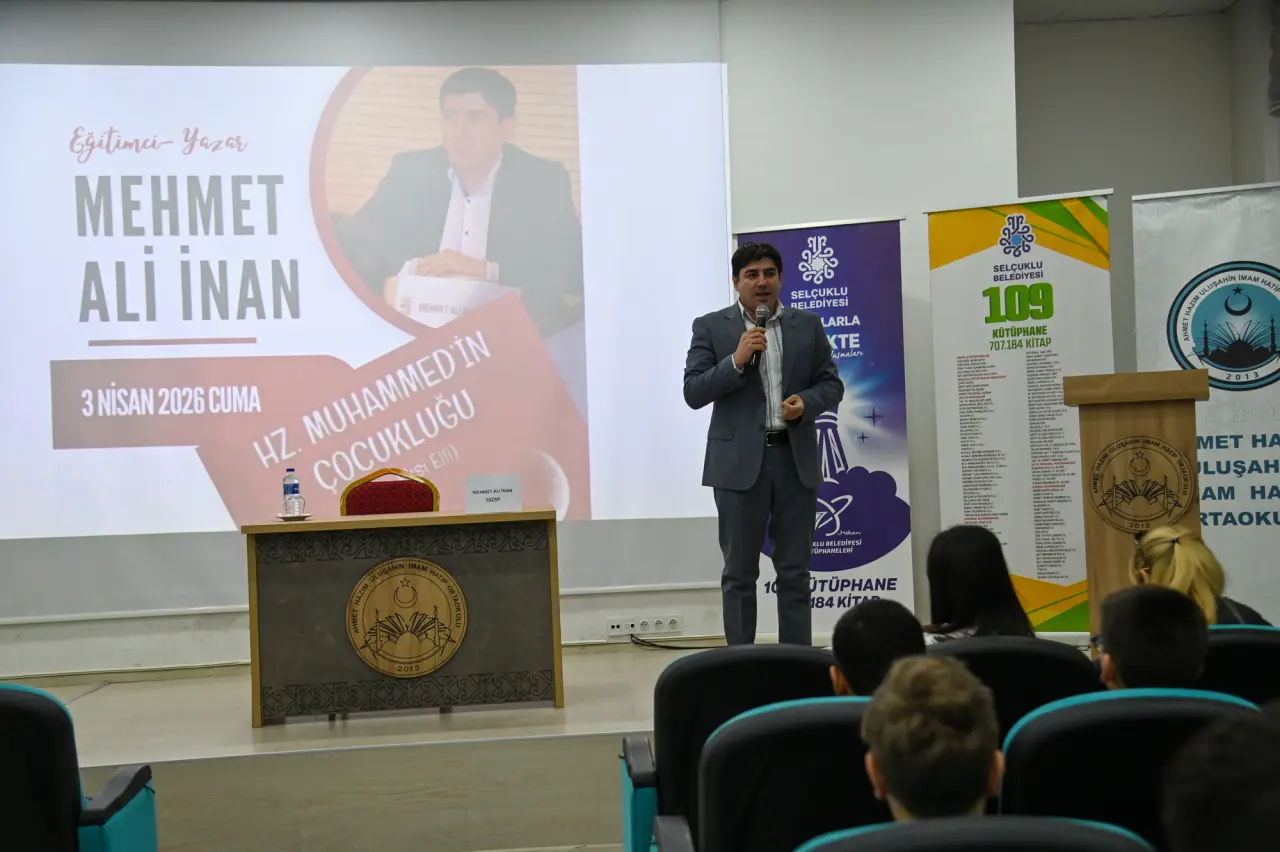 Selçuklu Belediyesi tarafından bu yıl 4’üncüsü düzenlenen Okur-Yazar Buluşmaları kapsamında Eğitimci Yazar Mehmet Ali İnan, Ahmet Hazım Uluşahin İmam Hatip Ortaokulu’nda öğrencilerle bir araya geldi.