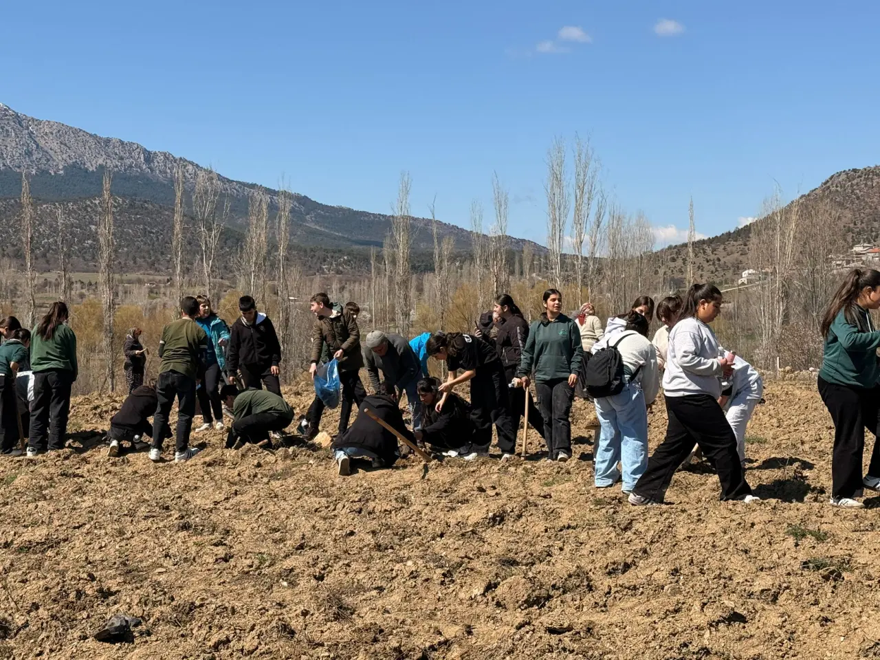 Etkinlikte 600 dağ armudu, 600 dut, 100 hünnap, 100 ıhlamur ile 200 sedir ve çam fidanı olmak üzere toplam 1.900 fidan toprakla buluşturuldu.