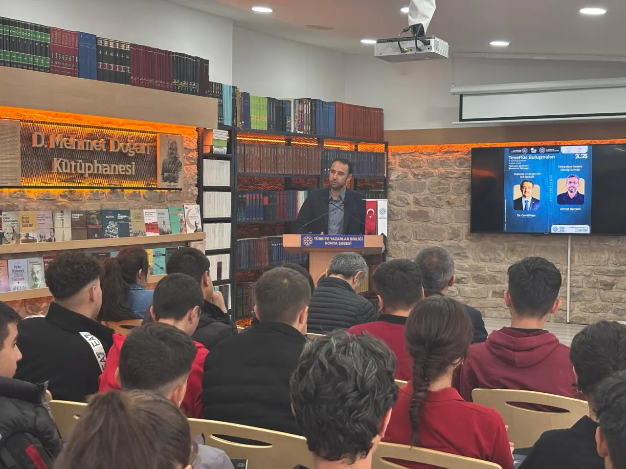 Bu kapsamda, yazarlar Cemil Paslı ve Ahmet Demirel, Karatay 15 Temmuz Şehitleri Anadolu Lisesi öğrencileriyle bir araya geldi. Programda edebiyat, yazarlık serüveni ve kitapların hayatımıza kattıkları üzerine sohbet edildi.