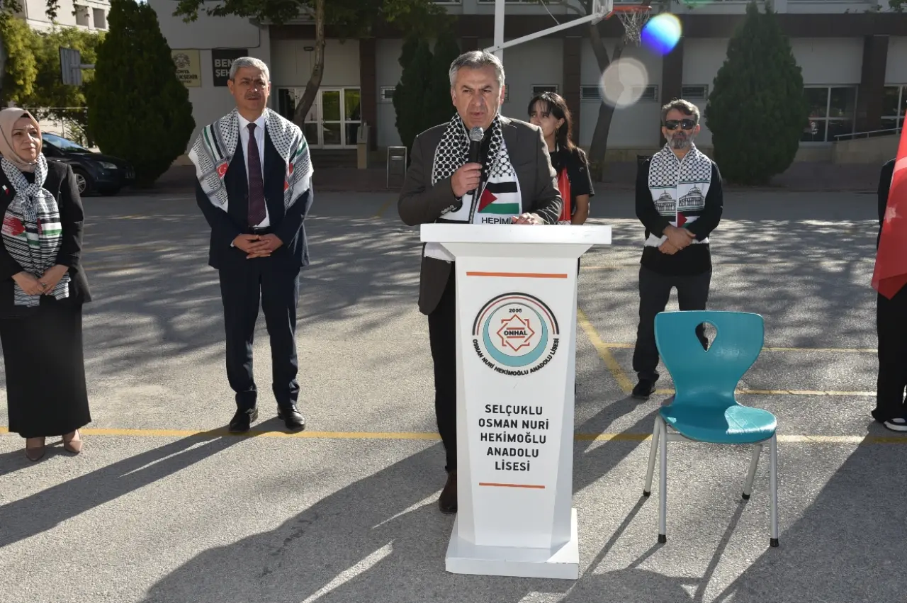 Konya İl Millî Eğitim Müdürü Murat Yiğit, “Filistin Farkındalık Etkinlikleri” kapsamında Selçuklu Osman Nuri Hekimoğlu Anadolu Lisesinde öğrencilerle buluştu. Programda öğrenciler, şiirler, kısa film gösterimleri ve farkındalık konuşmalarıyla Filistin halkına destek mesajı verdi.