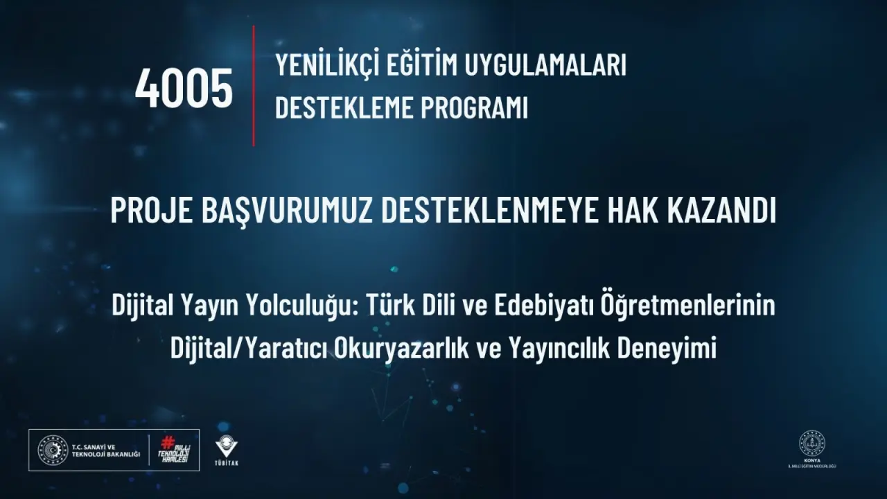 4005 programında ise “Dijital Yayın Yolculuğu: Türk Dili ve Edebiyatı Öğretmenlerinin Dijital/Yaratıcı Okuryazarlık ve Yayıncılık Deneyimi” başlıklı proje ile Türk Dili ve Edebiyatı öğretmenlerinin dijital ve yaratıcı okuryazarlık becerilerinin geliştirilmesi, dijital içerik üretimi ve yayıncılık süreçlerine aktif katılımlarının sağlanması amaçlanıyor. Projede dijital hikâye anlatımı, içerik tasarımı ve yayıncılık araçlarının kullanımı gibi uygulamalar gerçekleştirilecek.