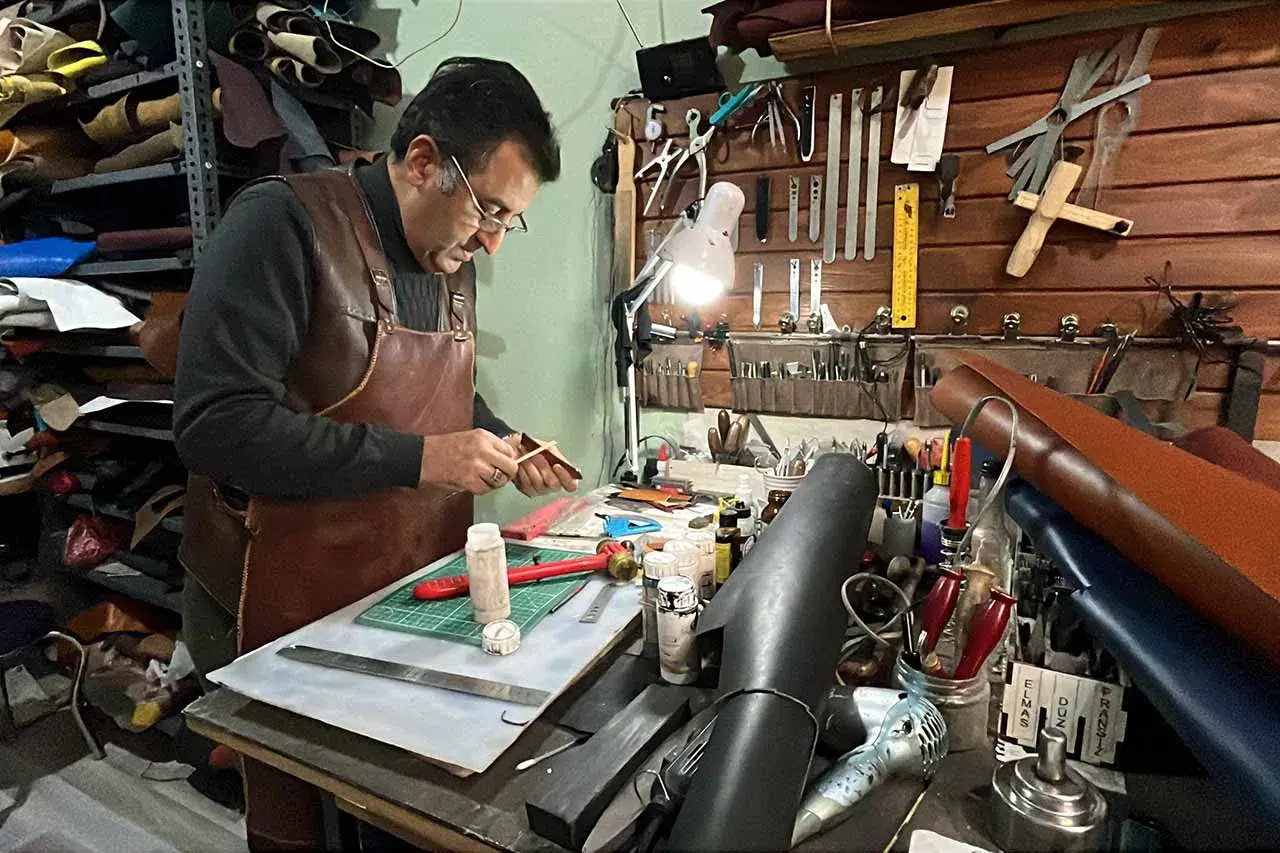 Deri ustası Yavuz Erdal, "Bu işi yaklaşık 10 yıldır yürütüyoruz. Aynı zamanda saat alım-satımı, vintage dediğimiz eski model, antika değerindeki saatlerin alım satımını yapıyoruz. Bu macera kendi saatlerimize kordon yapma şekliyle başladı. Ama daha önceden deriye olan hobim, deriye olan ilgim de vardı. Biraz daha geliştirdik. Daha önce aksesuar, işte tabanca kılıfı, bıçak kılıfı gibi deri malzemeler yapıyorduk. Bunu saat kordonuna çevirdik. Biraz da süreç aldı. Halen de devam ediyor. Özellikle kendi saatlerimize yurt dışı tarafında, iç piyasada, lokal pazarda da satış yapmaktayız. Dikiş veya diğer ayrıntıları daha görsel amaçlı kozmetik ayrıntılarını eşim yapıyor. Bu şekilde bu işi yürütüyoruz" dedi.