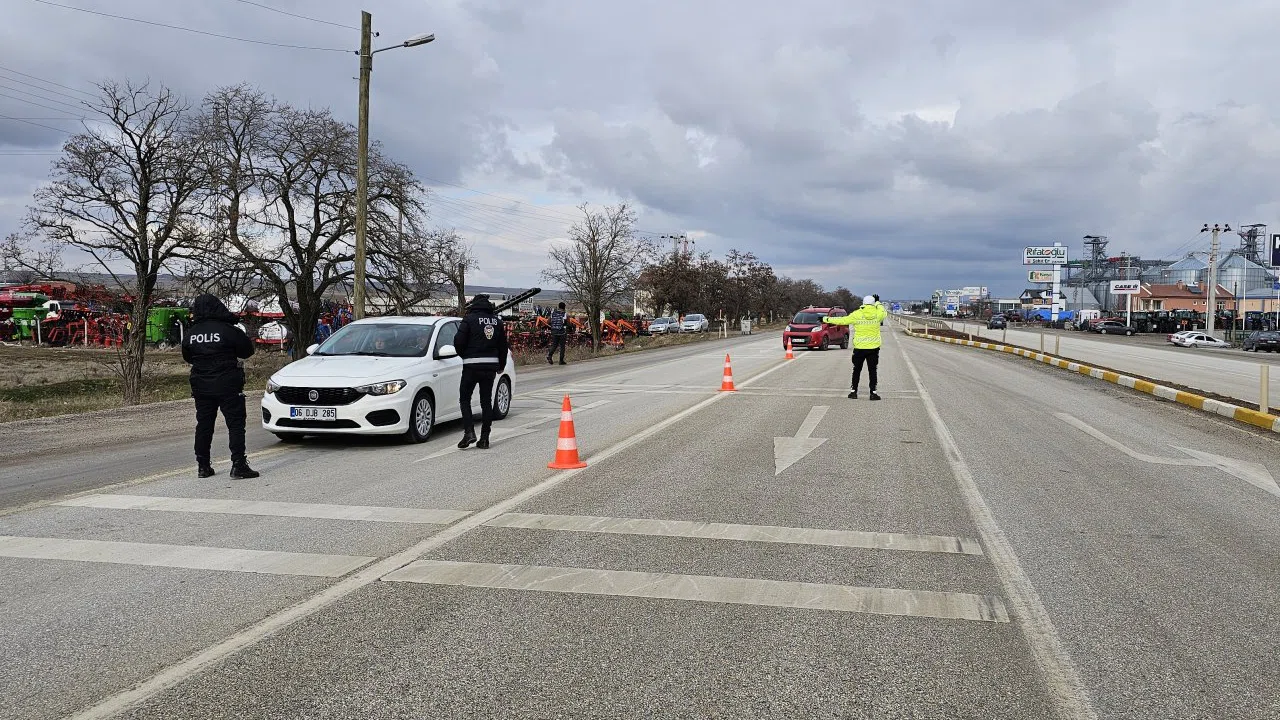 İlçe Emniyet Müdürlüğü ekipleri, Ankara-Konya kara yolundaki uygulama noktasında denetim yaptı.