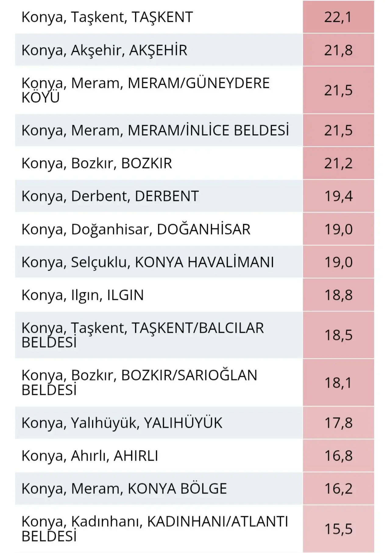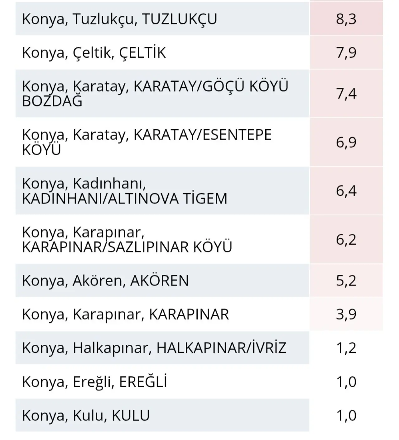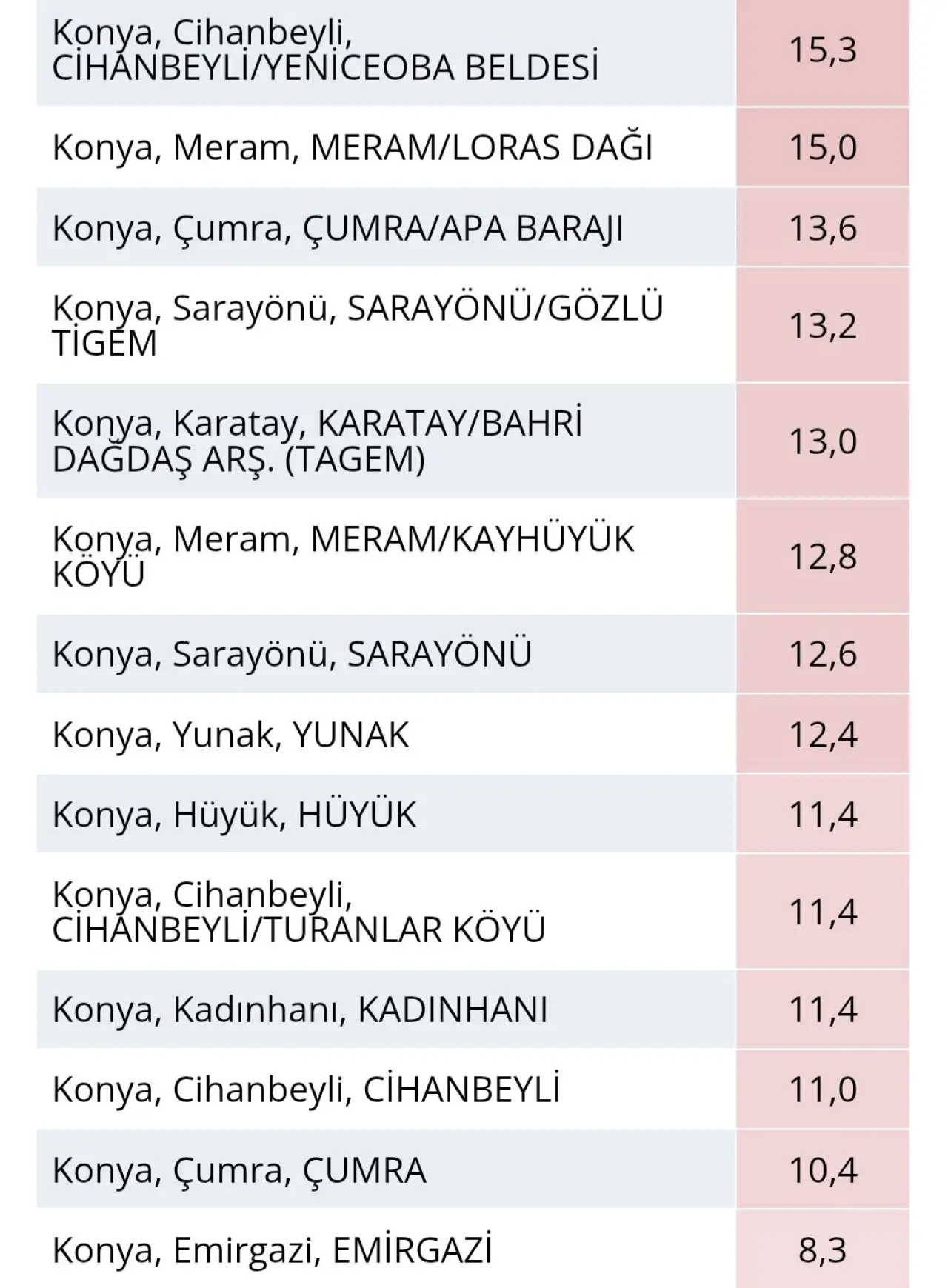 Öte yandan yağışın en düşük seviyede kaldığı ilçe ise Ereğli oldu. Ereğli’de ölçülen yağış miktarının yalnızca 1 kilogramda kalması, Konya genelinde yağış dağılımındaki dengesizliği gözler önüne serdi.