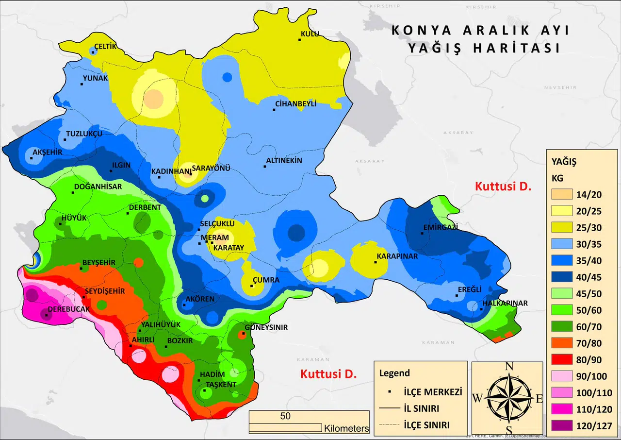 Demir, Aralık ayına ait yağış haritasını paylaşarak yaptığı açıklamada, Konya’nın çok geniş bir kesiminde etkili yağışlar görüldüğünü belirtti. Ayın son gününde etkili olan yağışların Aralık verilerine dahil edilmediğini vurgulayan Demir, bu yağışların Ocak ayı kayıtlarında yer alacağını ifade etti.