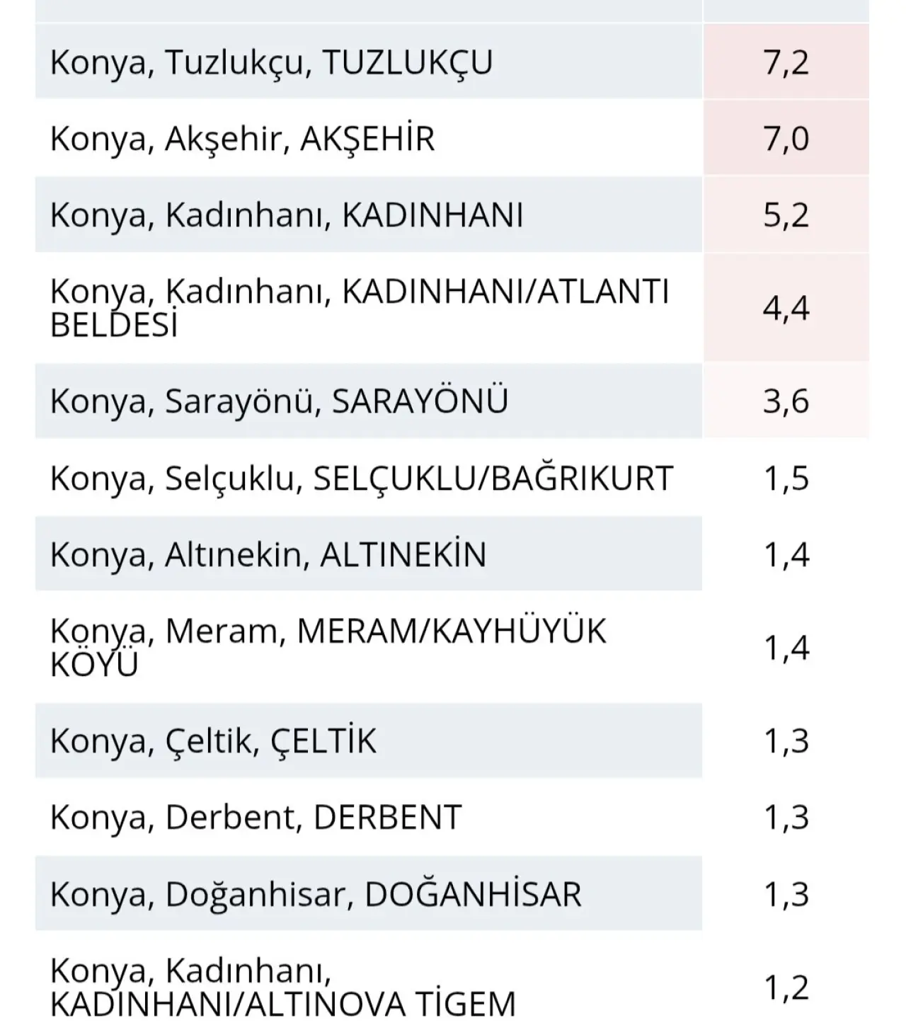 Konya’da dün gece en fazla yağış Tuzlukçu’da kaydedildi. Amatör hava tahmincisi Kuttusi Demir, gece boyunca en yüksek yağış miktarının 7,2 kilogramla Tuzlukçu’da ölçüldüğünü belirtti.