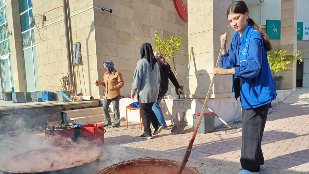 Proje kapsamında gönüllü gençler, doğal yöntemlerle salça ve kahvaltılık sos hazırladı. Hazırlanan ürünler, yine gençlerin desteğiyle ihtiyaç sahibi ailelere ulaştırılacak.
