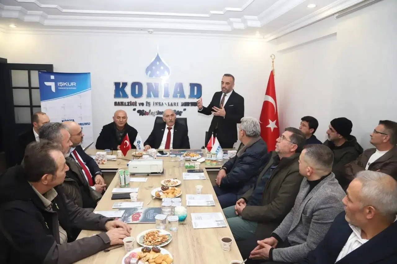 Konya İŞKUR İl Müdürlüğü, istihdamı artırmaya yönelik yürütülen çalışmalar kapsamında KONİAD’da düzenlenen toplantıda iş dünyasıyla bir araya geldi. Konya Sanayici ve İş İnsanları Derneği (KONİAD) ev sahipliğinde gerçekleştirilen toplantıya Konya İŞKUR İl Müdürü Önder Çiftci katıldı.