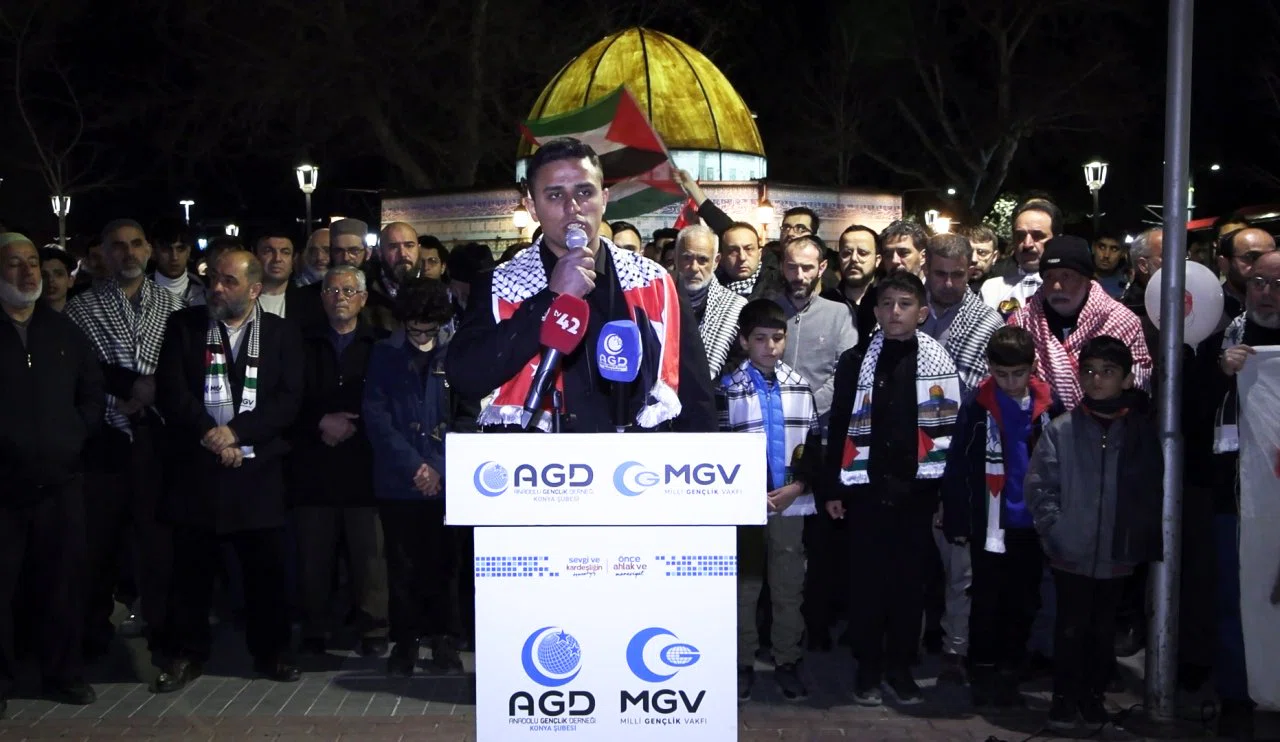 AGD Konya Şubesi olarak Filistin için mücadeleye kararlılıkla devam edeceklerini belirten Yılmaz, “Bizler meydanları terk etmeyecek, maddi sahadaki cihaddan geri durmayacağız. Ülkelerimizi İsrail'e karşı bir cephe haline getirmek için tüm gücümüzle çalışacağız” şeklinde konuştu.