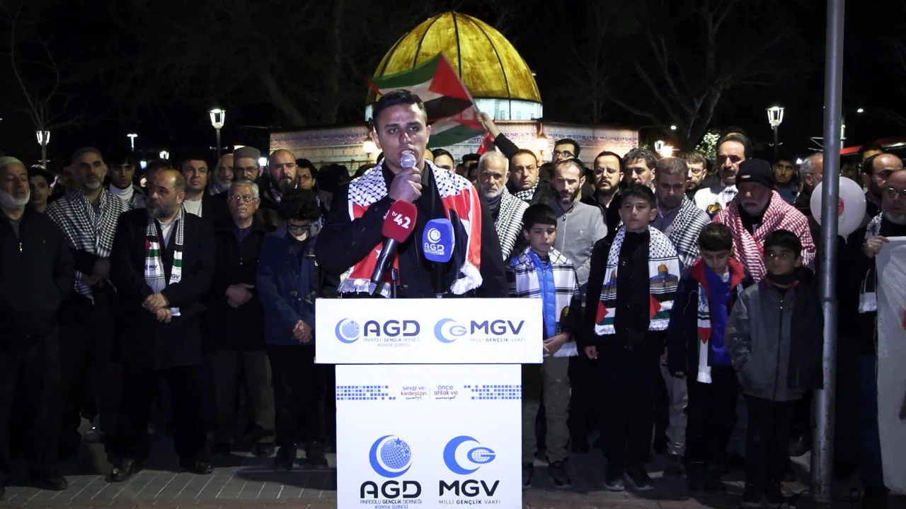 Anadolu Gençlik Derneği (AGD) Konya Şubesi, İsrail’in Gazze'ye yönelik son saldırılarının ardından “Siyonist İsrail’e Lanet, Gazze’ye Destek” başlıklı basın açıklaması gerçekleştirdi.
