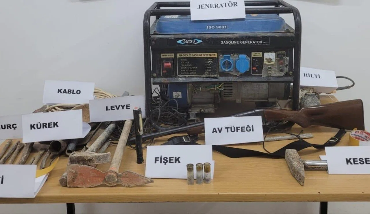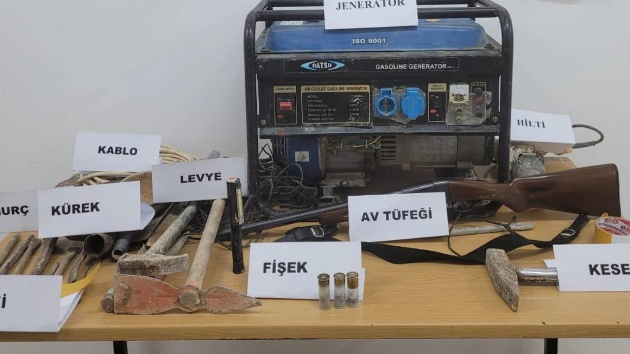 Ekiplerce kaçak kazıda kullanılan malzemelere el konuldu.