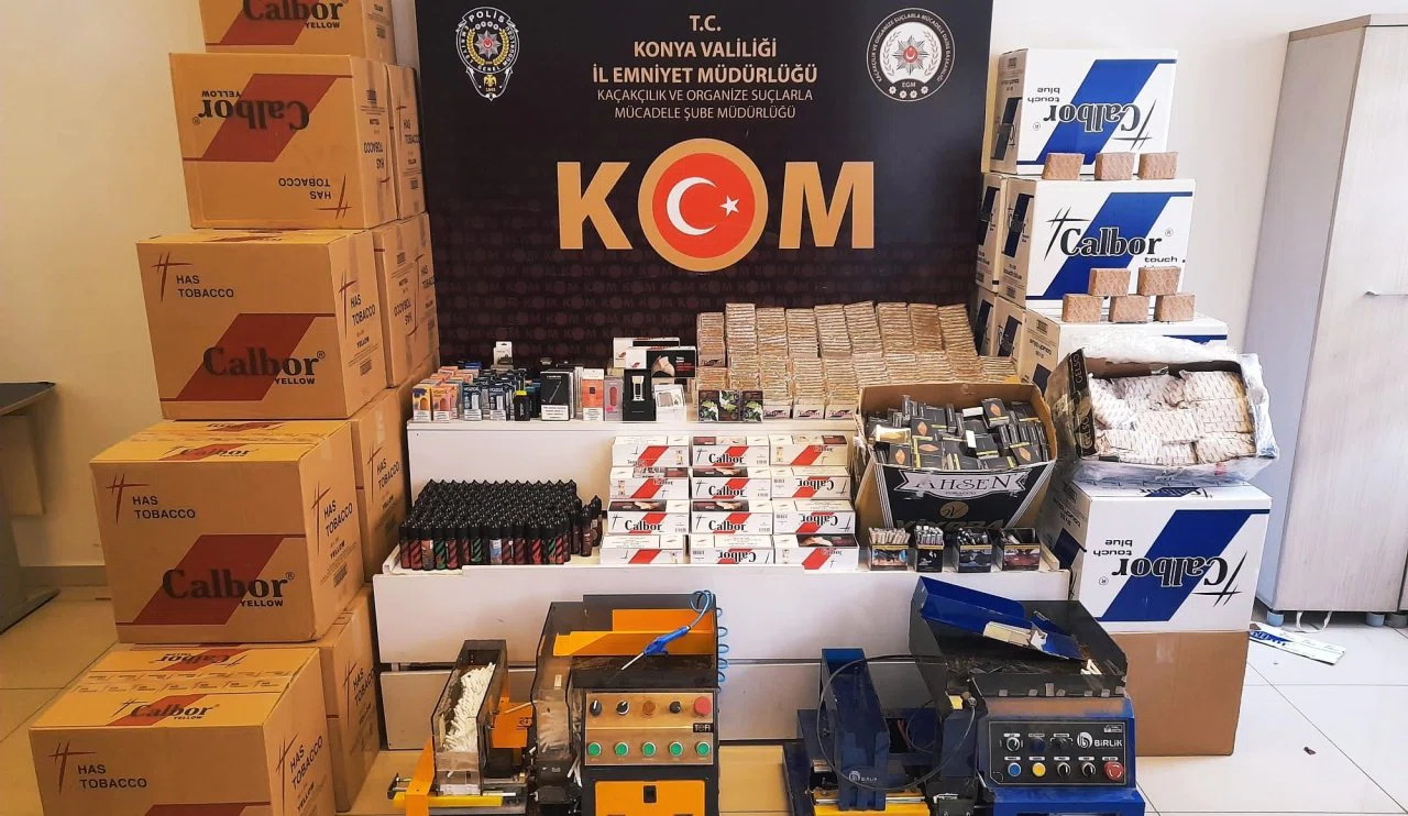 Konya Emniyet Müdürlüğü’ne bağlı Kaçakçılık ve Organize Suçlarla Mücadele Şube Müdürlüğü ekipleri kaçakçılara yönelik operasyonlarını aralıksız sürdürüyor. Ereğli Kom Büro Amirliğince, tütün mamulü kaçakçılarına yönelik 5 iş yerine yapılan baskında 320.600 adet sahte bandrollü boş makaron, 22.500 adet sigara sarma kağıdı, 2.230 paket doldurulmuş sigara, 296 adet elektronik sigara likidi, 50 adet elektronik sigara, 25 kg. nargile tütünü, 16 kg. kıyışmış tütün ve sigara üretiminde kullanılan 4 adet tütün sarma makinesi ve kompresör ele geçirildi. 5 şahıs gözaltına alındı.r