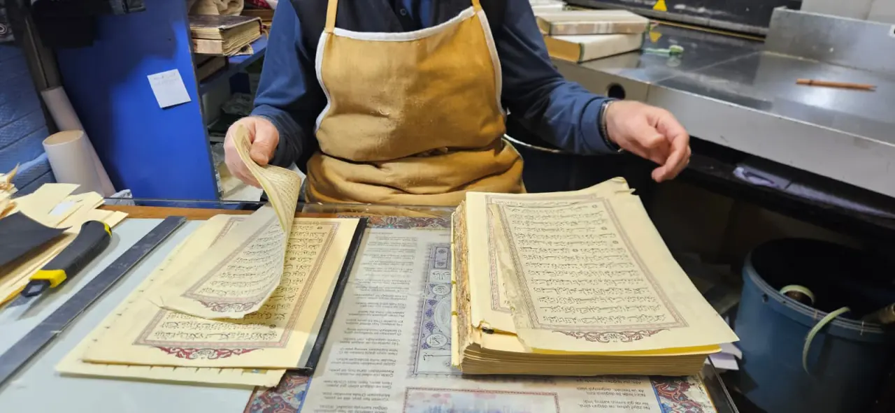 Kur’an-ı Kerim’e gösterilmesi gereken hassasiyete dikkat çeken Özcan, yanlış kullanım ve bilinçsiz müdahalelerin büyük sorunlara yol açtığını belirtti. Rutubet nedeniyle sayfaların kıvrıldığını, yerleri belli olsun diye sayfaların kırıldığını ve bantla yapılan hatalı yapıştırmaların kitabı tahrip ettiğini söyleyen Özcan, “Kur’an-ı Kerim’i ciltleyecek kişinin mutlaka bu ilme ve hassasiyete sahip olması gerekir. Kur’an-ı Kerim’i bilmeyen biri sayfaları karıştırabilir, eksik ya da hatalı cilt yapabilir. Bu da doğru değildir” ifadelerini kullandı.