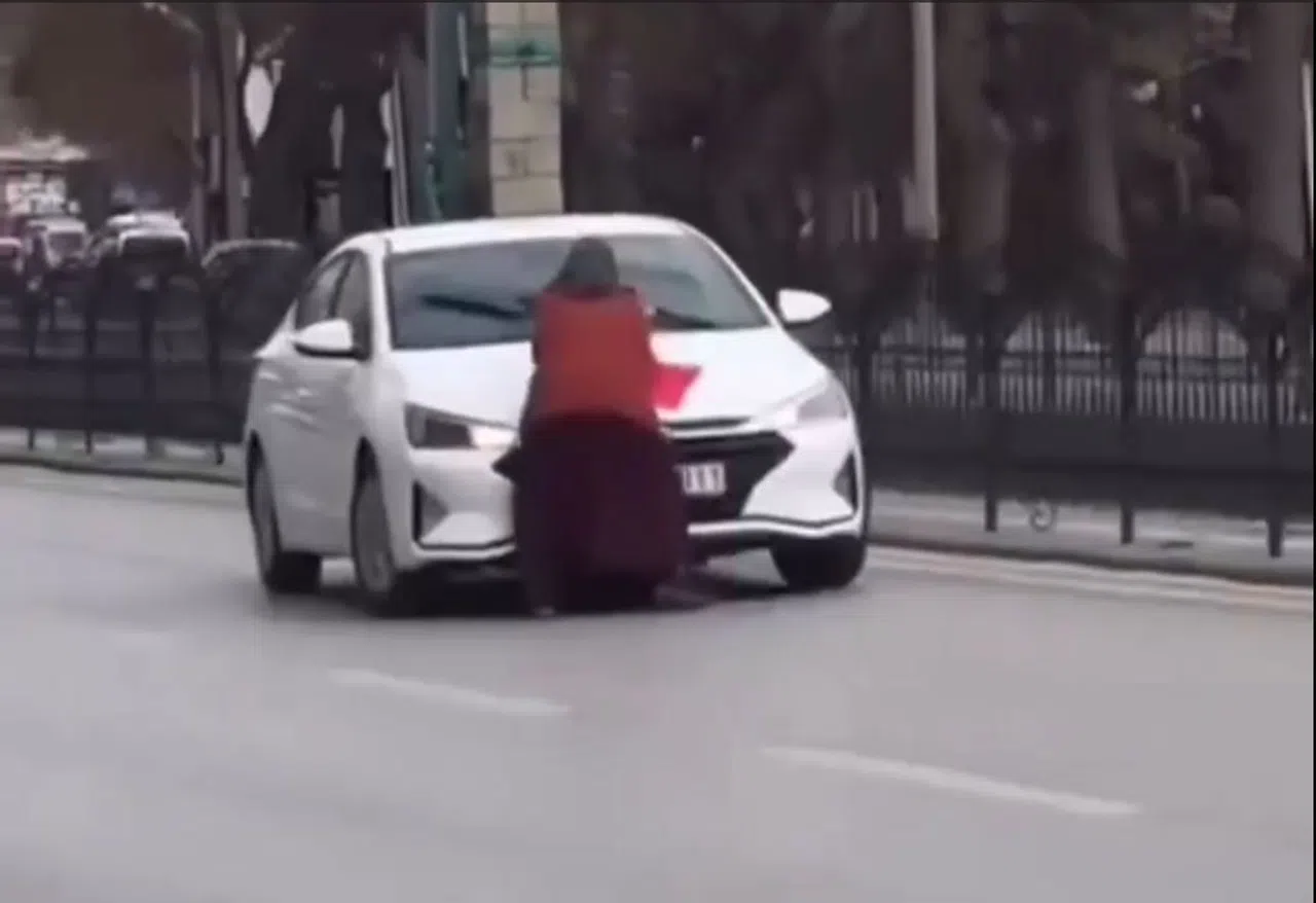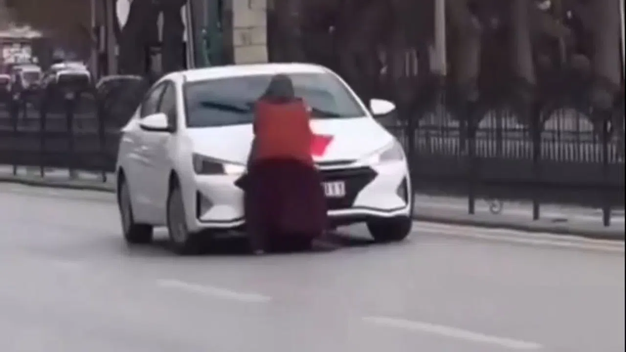 Konya'da, kimliği belirsiz bir kadının tuhaf davranışları trafiği alt üst etti, o anlar cep telefonu kamerasına böyle yansıdı..