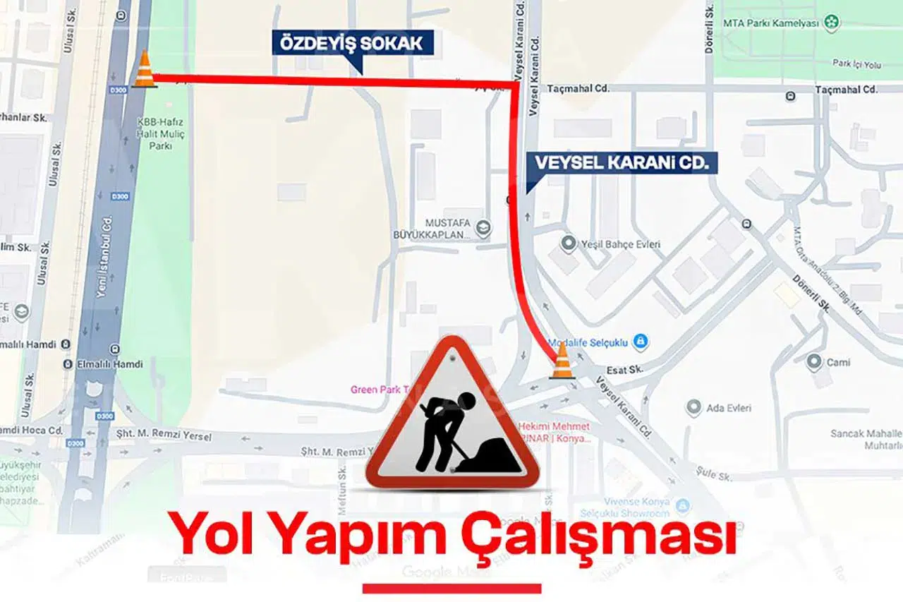 16 Eylül - 16 Ekim tarihleri arasında Şehit Mehmet Remzi Yersel Caddesi ile Büyük Irmak Sokak arası, Bosna Hersek Mahallesi'nden Şehit Mehmet Remzi Yersel Caddesi'ne giden istikamet tek yönlü olarak trafiğe kapatılacaktır.