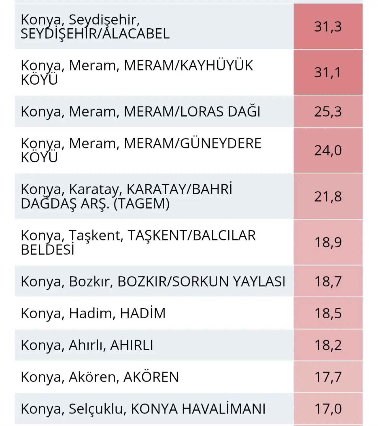 Demir, kent genelinde “çok güzel bir sistem yaşandığını” belirterek bazı istasyonlarda 30 kilogramı aşan yağış ölçümlerinin kaydedildiğini söyledi. Merkezde de 17 kilogram yağış düştüğünü aktaran Demir, sistemin Konya genelinde beklenenden daha güçlü etkili olduğunu ifade etti.