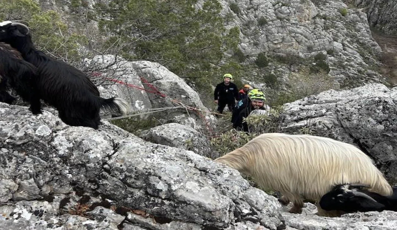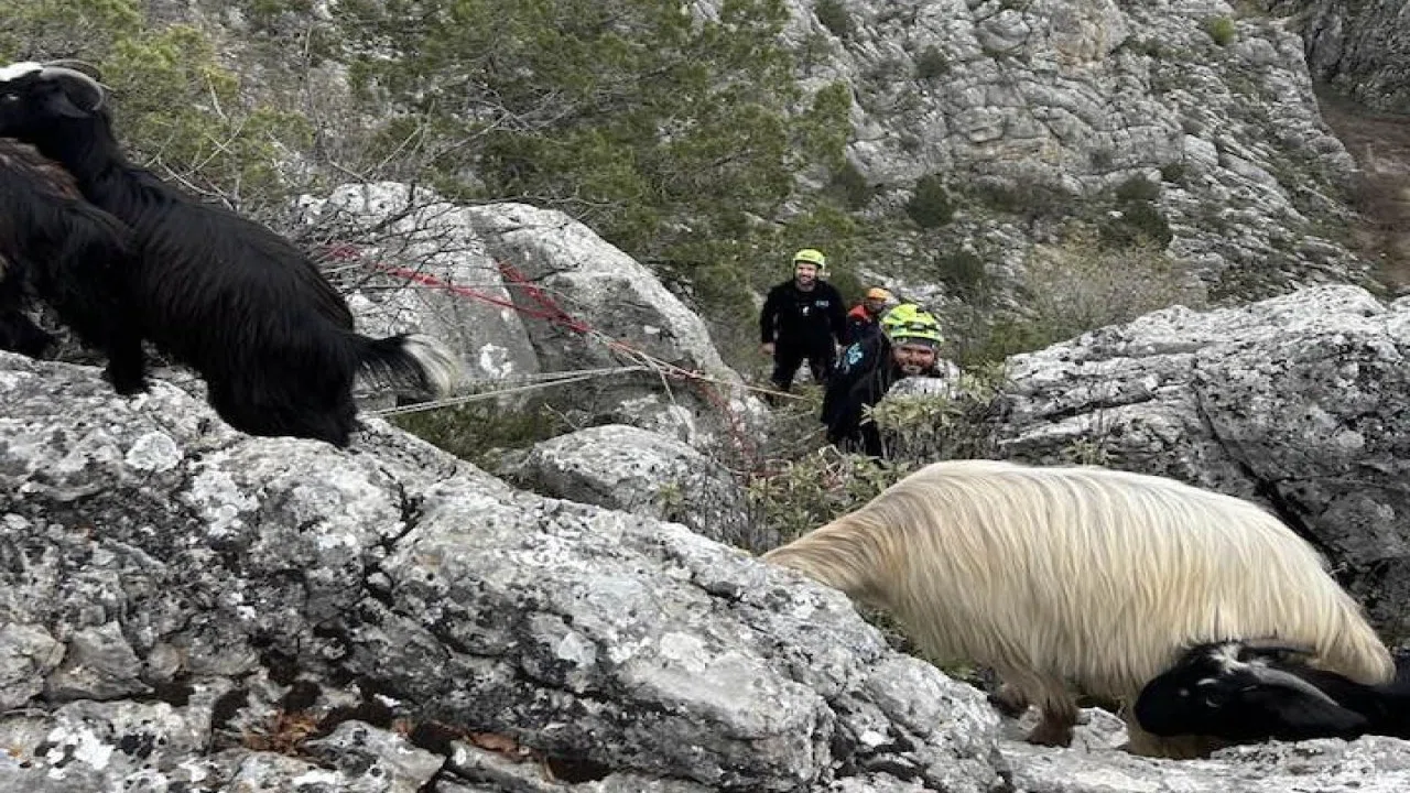 Bölgeye gelen ekipler, yaptıkları keşif sonrası halatlar yardımıyla zorlu bir kurtarma operasyonu gerçekleştirdi. Mahsur kalan 9 keçi, ekiplerin yoğun çabası sonucu güvenli şekilde kurtarılarak sahibine teslim edildi.