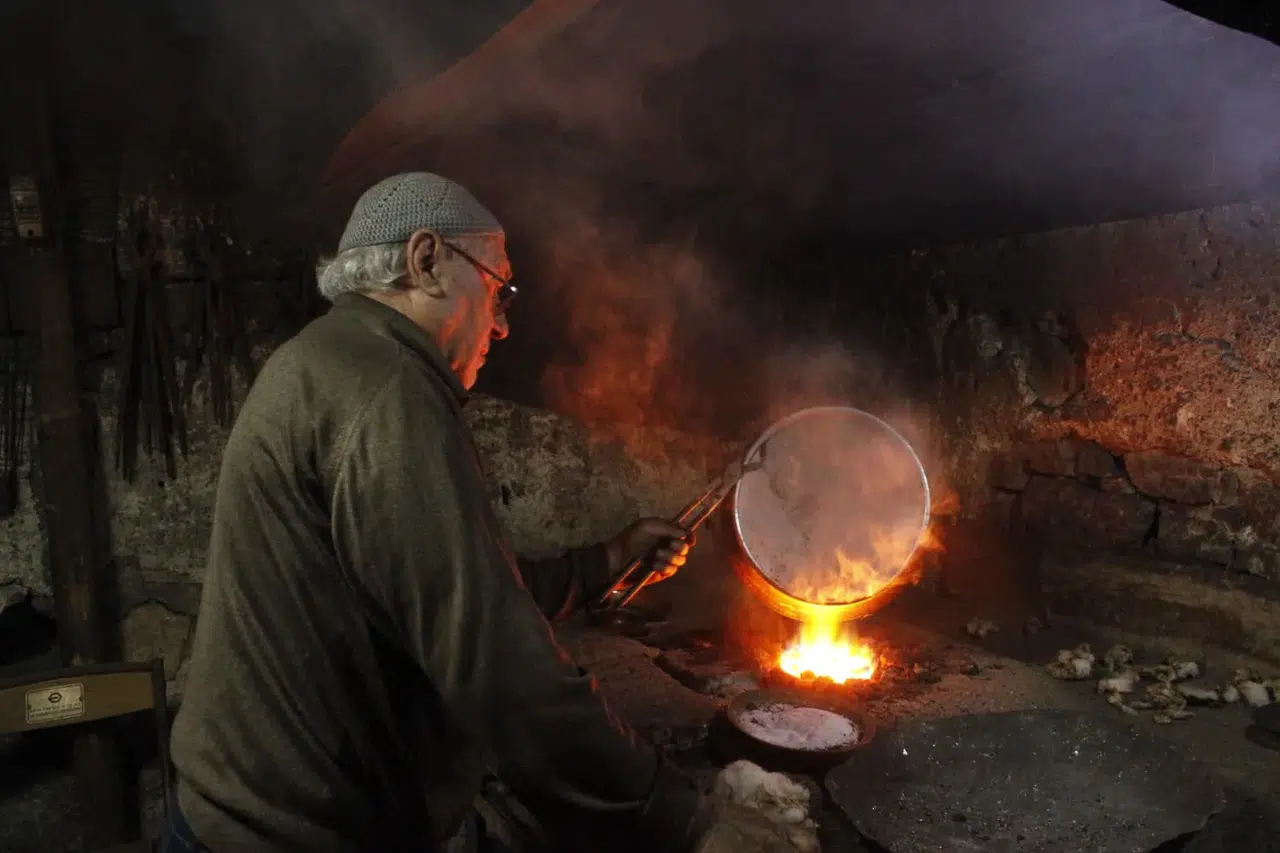 Konya’nın tarihi Gevraki Hanı’nda, bakırcılık mesleğinin son temsilcilerinden biri olarak mesleğini ayakta tutmaya çalışan Mahir Küçüktongur, yıllardır sürdürdüğü zanaatını ve bakırcılığın geldiği noktayı anlattı.