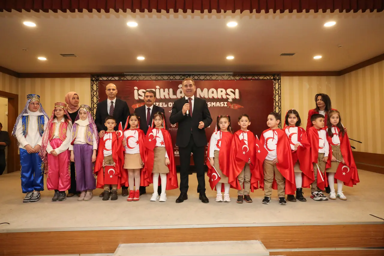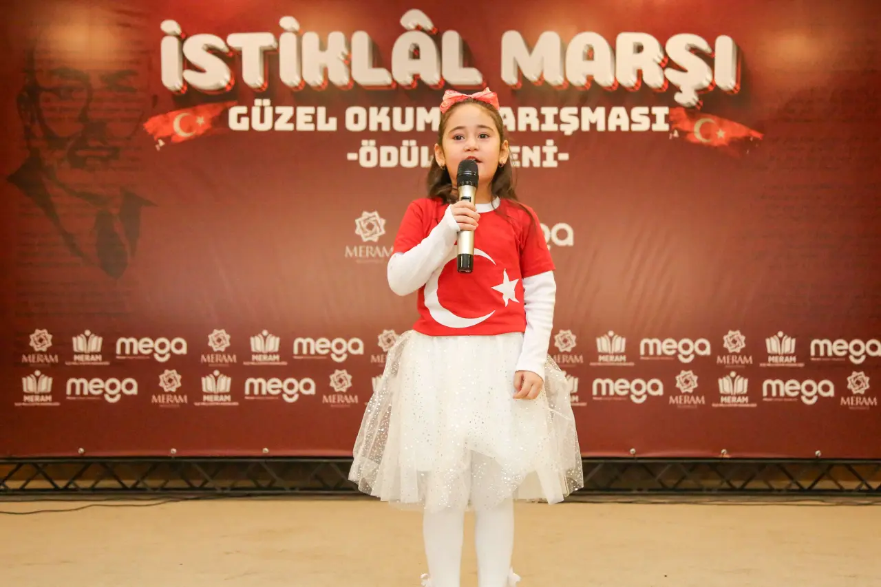 Meram Belediyesinin eğitim alanında hayata geçirdiği Meram Gelişim Akademisi (MEGA) projeleri kapsamında geleneksel hale gelen İstiklal Marşı’nı Güzel Okuma Yarışması, bu yıl da duygusal anlara sahne oldu. Anaokulu öğrencileri, yarışmada İstiklal Marşı’nı en güzel şekilde okuyabilmek için sahneye çıktı.