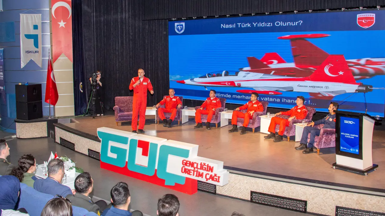 Çalışma ve Sosyal Güvenlik Bakanlığı koordinasyonunda, Türkiye İş Kurumu (İŞKUR) tarafından düzenlenen Bölgesel Kariyer Fuarı çerçevesinde Konya’ya gelen dünyaca ünlü akrobasi timi, Sultan Alparslan Kültür Merkezi’nde gerçekleştirilen söyleşide öğrencilerle buluştu. Programda pilotlar; havacılıkta disiplin, ekip çalışması, liderlik ve akrobasi uçuşlarına dair deneyimlerini paylaştı.