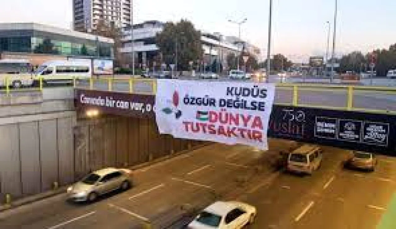İlk günden bu yana Filistin halkına destek veren Konyalılar, bugün şehri pankartlarla donattı.