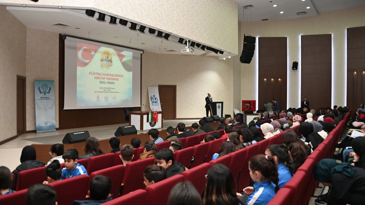 Filistin’de yaşanan vahşete dikkat çekmek amacıyla düzenlenen “Filistinli Kardeşlerimize Mektup” yarışmasının ödülleri düzenlenen törenle kazanan öğrencilere verildi. Selçuklu Belediyesi ve Selçuklu İlçe Milli Eğitim Müdürlüğü işbirliği ile ortaokul ve lise kategorisinde düzenlenen yarışmaya 36 okul başvuru yapmıştı.