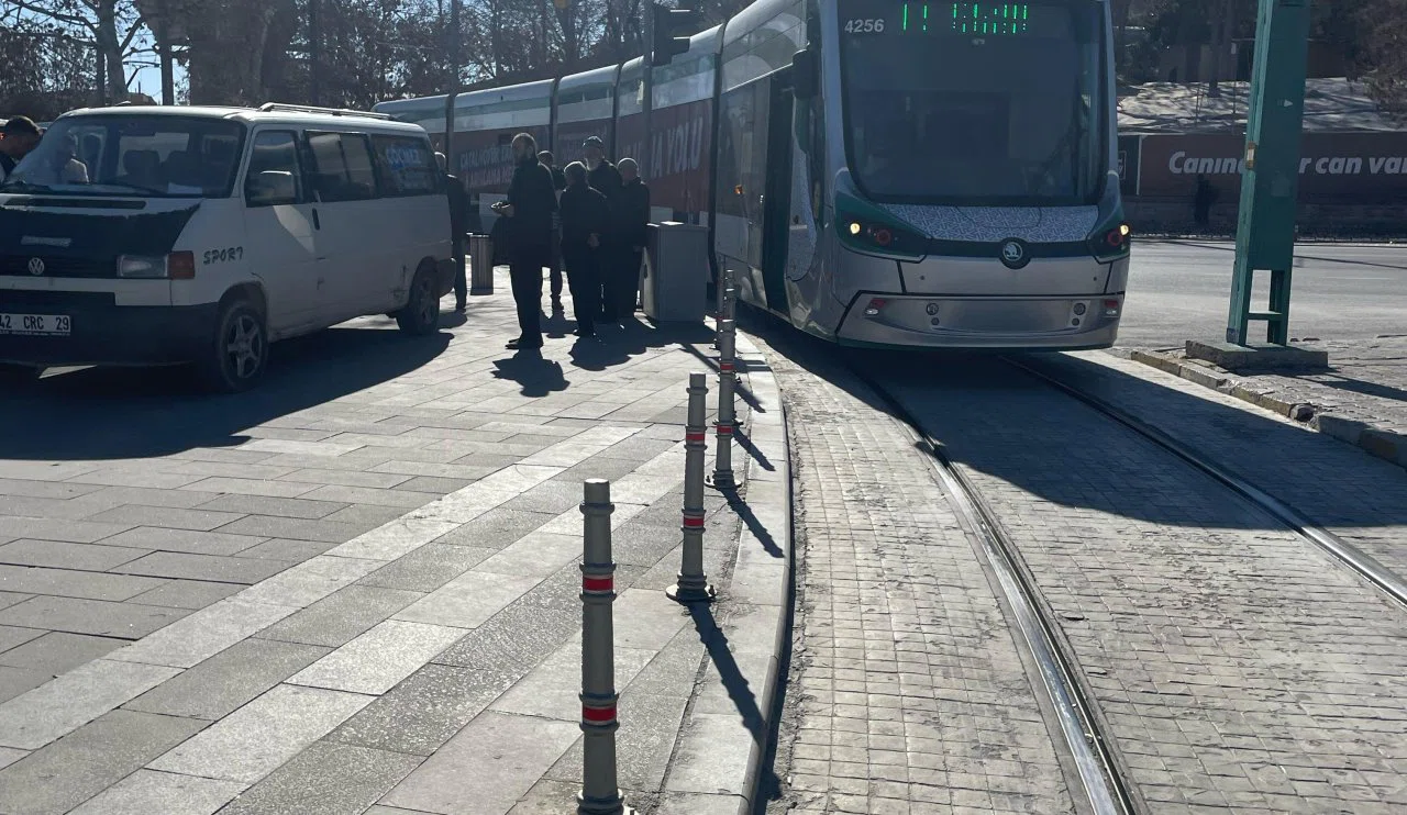 Konya'da otomobil tramvaya çarptı! Seferler durduruldu...