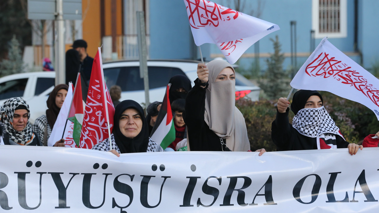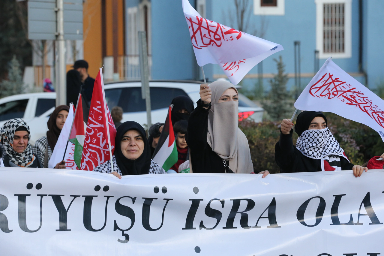 AA'da yer alan habere göre; Konya'da çeşitli sivil toplum kuruluşlarının üyeleri ve vatandaşlar, "Özgür Kudüs" için Kılıçarslan Meydanı'nda bir araya geldi.