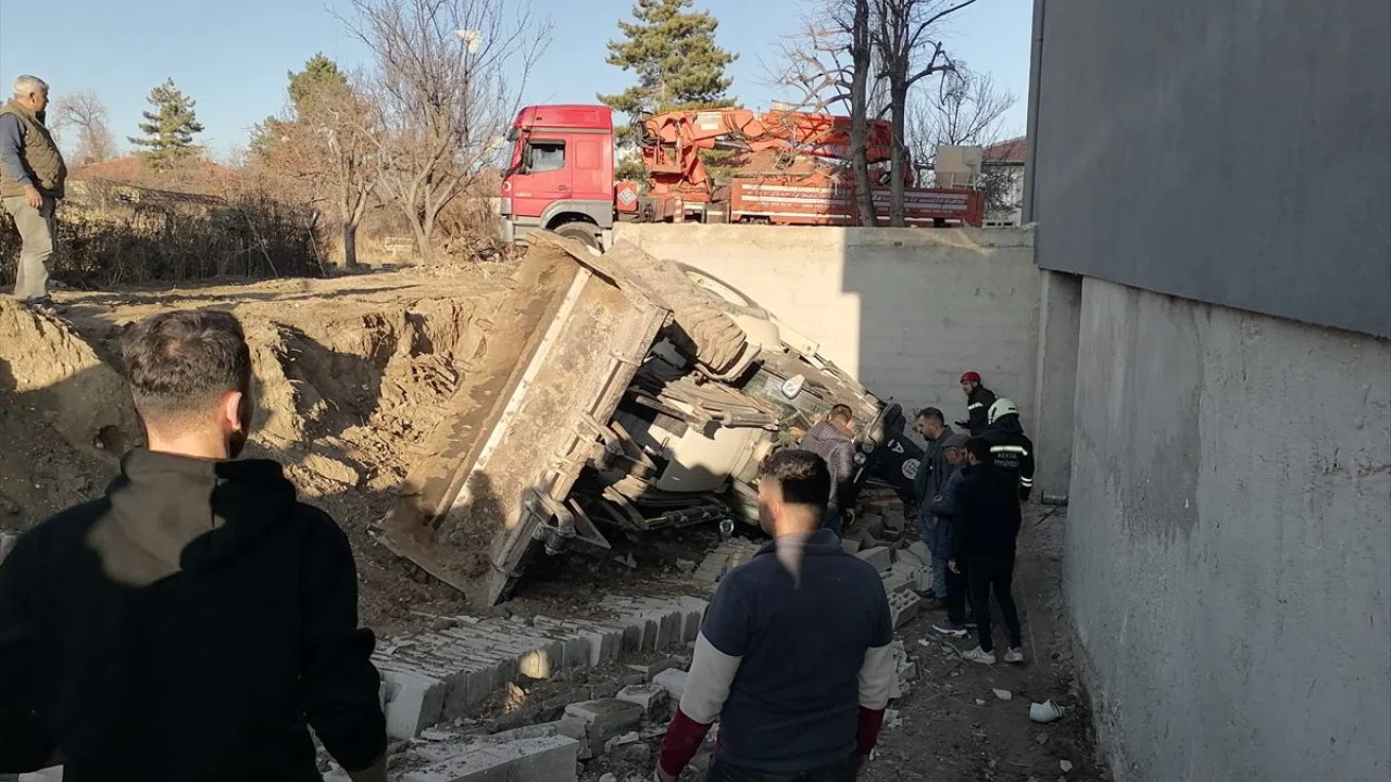 Cahı Mahallesindeki bir inşaatın çevre duvarının toprak dolgusunu yapan operatör Hüseyin T'nin kullandığı kepçe, duvarın çökmesi sonucu devrildi.