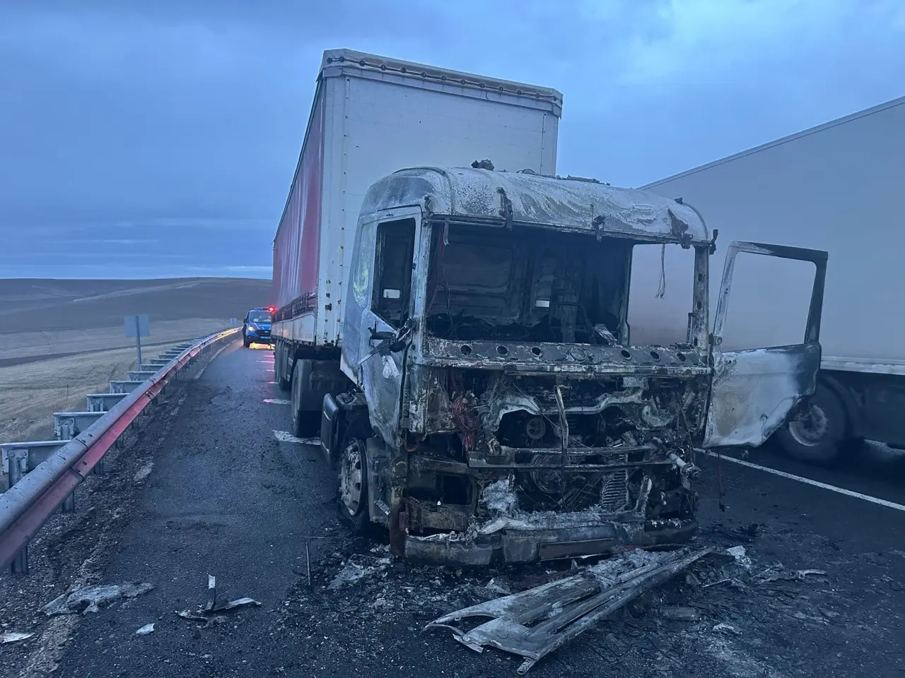 Olay yerine sevk edilen itfaiye ve jandarma ekiplerinin müdahalesiyle yangın kısa sürede kontrol altına alınarak söndürüldü. Şans eseri tır sürücüsü yaralanmazken, aracın kabini tamamen yanarak kullanılmaz hâle geldi.