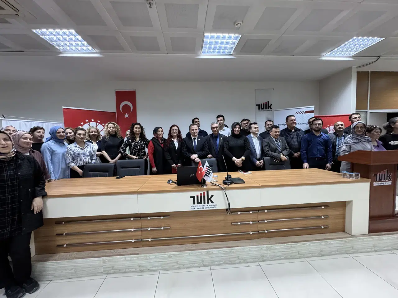 TÜİK personelinin aktif katılımıyla gerçekleştirilen eğitim semineri, soru-cevap bölümünün ardından sona erdi. Program, hatıra fotoğrafı çekimiyle tamamlandı.