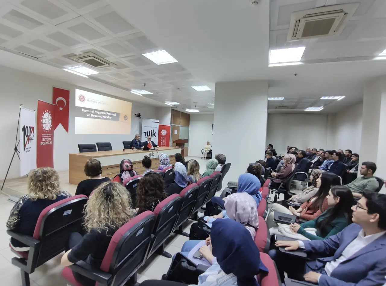 Seminer kapsamında, İletişim Başkanlığı Konya Bölge Müdürlüğü Şube Müdürü H. Rahmi Dalmaç tarafından “Kamusal Yaşamda Protokol ve Nezaket Kuralları” başlıklı sunum gerçekleştirildi. Sunumda protokolün tanımı ve türleri, temsil, karşılama ve uğurlama kuralları, iletişim ve hitap biçimleri, toplantı ve makam protokolü, kıyafet kuralları ile kamu kurumlarında ast-üst ilişkileri gibi konular ele alındı.