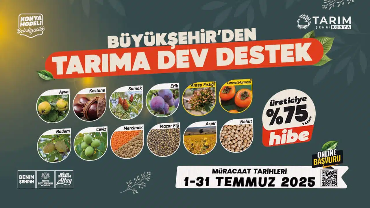 Bu kapsamda 31 ilçede her sene yaptıkları destek başvurularını 2026 yılında da sürdüreceklerini kaydeden Başkan Altay, “2026 yılı için yüzde 75 hibe destekli; ayva, kestane, sumak, erik, Antep Fıstığı, Cennet Hurması, badem, ceviz, mercimek, Macar Fiği, aspir, nohut başvurularını 1 Temmuz-31 Temmuz tarihleri arasında almaya başladık. Bu destekle başta zirai dondan etkilenen çiftçilerimiz olmak üzere tüm üreticimizin maliyet yükünü hafifletiyor bölgemizin tarımsal çeşitliliğini artırıyoruz. Bugüne kadar olduğu gibi bundan sonra da tarım şehri Konya’da üreticimizin yanında olmaya devam edeceğiz. Çiftçi Kayıt Sistemi’ne kayıtlı tüm çiftçi hemşehrilerimi Büyükşehir Belediyemizin sağladığı bu imkandan faydalanmaya davet ediyorum” dedi.