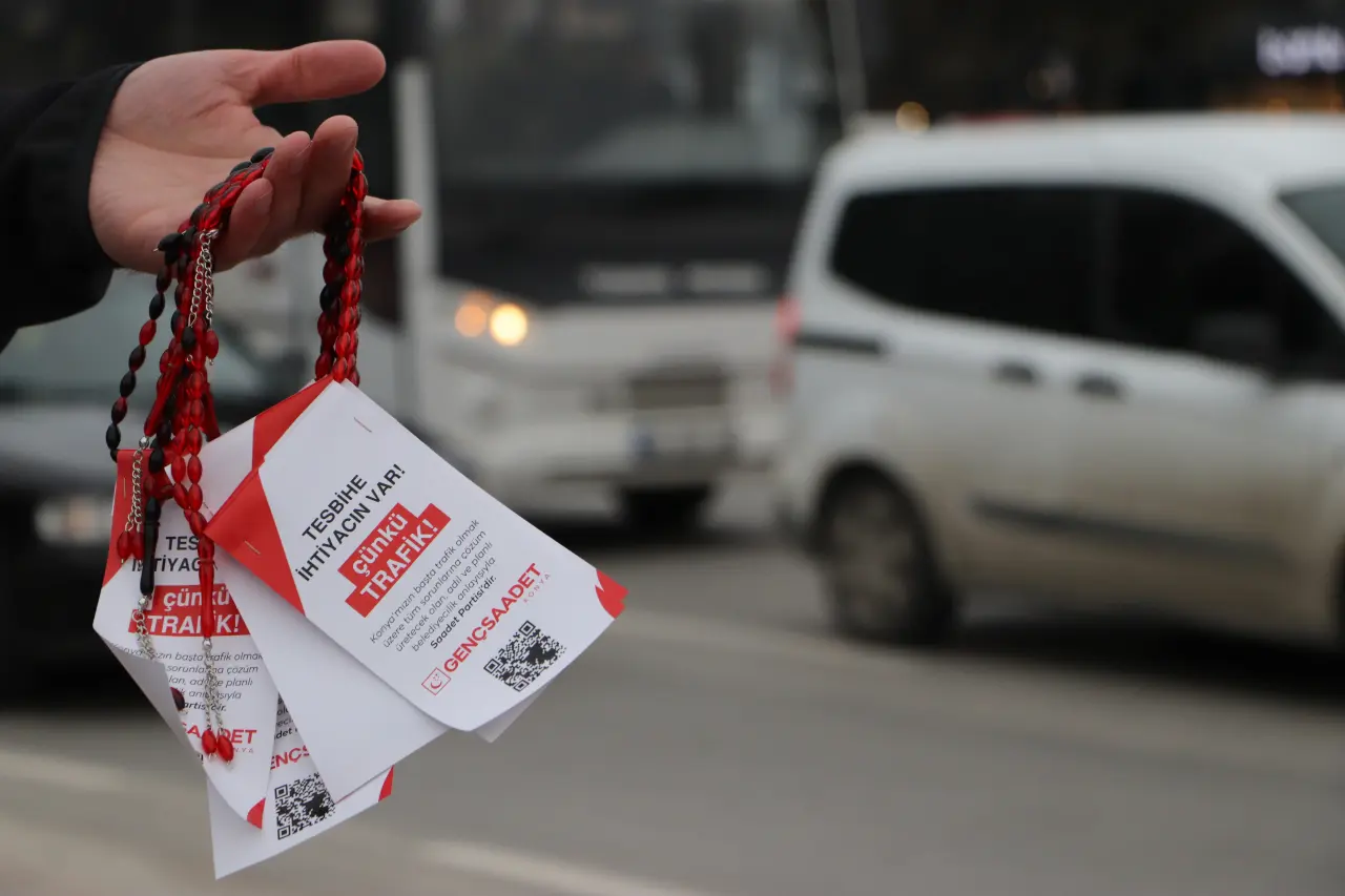Saadet Partisi Konya İl Gençlik Kolları, artan trafik yoğunluğuna dikkat çekmek amacıyla vatandaşlara tesbih dağıttı. Ankara Caddesi’nde gerçekleştirilen etkinlikte gençlik kolları üyeleri, sürücülerle sohbet ederek trafik sorunlarının günlük yaşamı olumsuz etkilediğini vurguladı.
