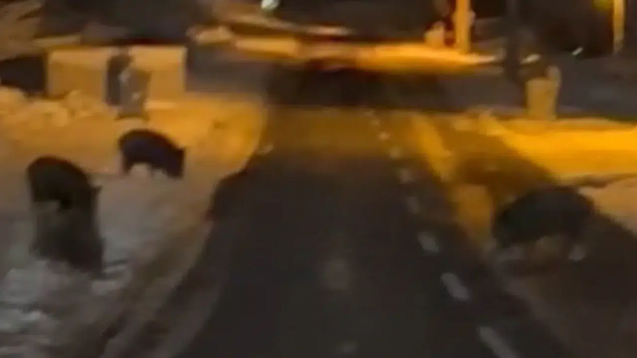 Konya’nın Karapınar ilçesinde kar yağışı sonrası yiyecek bulmakta zorlanan yaban domuzları, yerleşim alanlarına kadar indi. O anlar, vatandaşlar tarafından cep telefonu kamerasıyla kaydedildi.