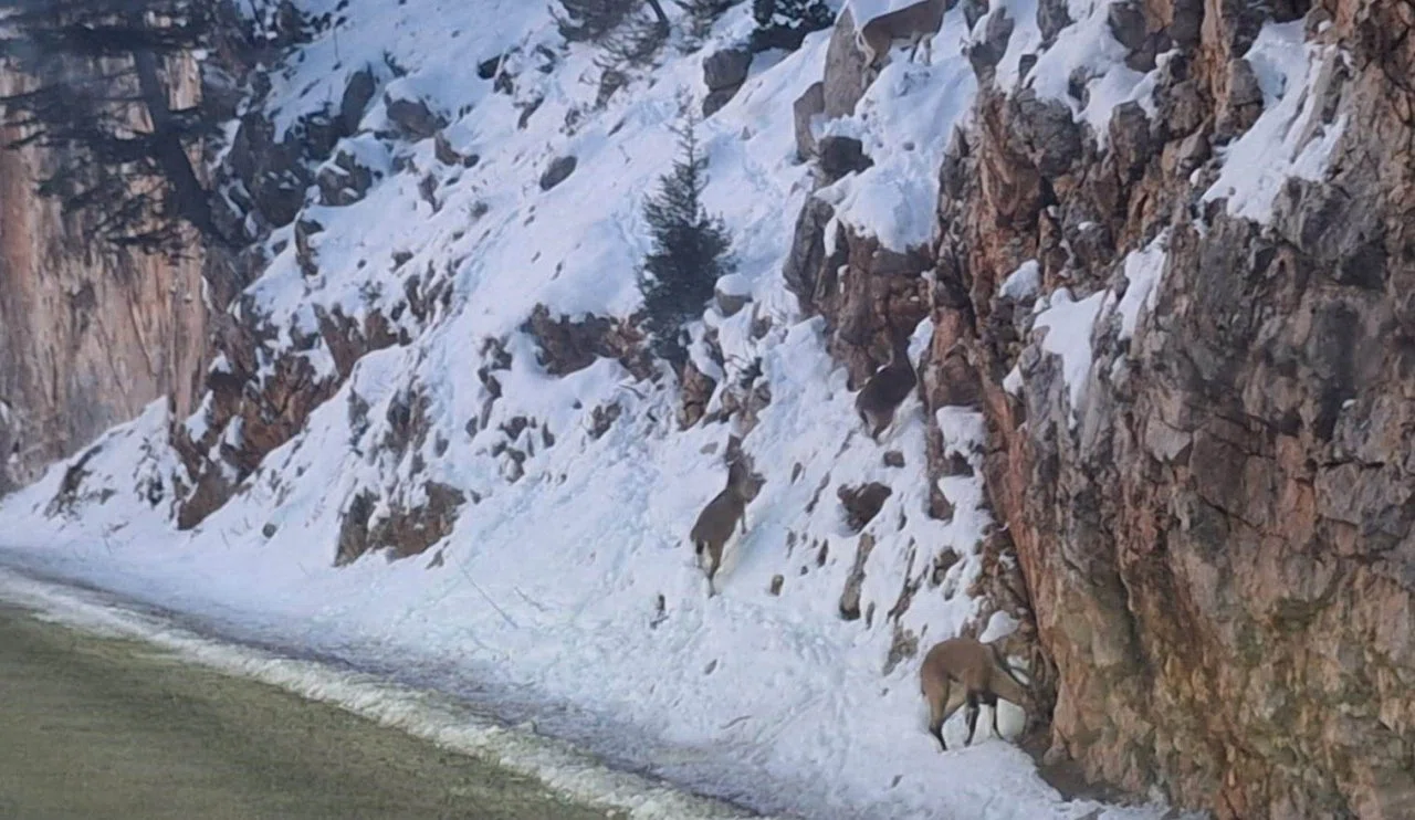 Konya ile Antalya sınırlarında bulunan Gidengelmez Dağları’nda, koruma altındaki yaban keçileri, yoğun kar yağışı nedeniyle yiyecek bulmakta güçlük çekince Seydişehir-Antalya kara yoluna kadar indi. Doğal yaşam alanlarından uzaklaşarak yol kenarına inen yaban keçileri, boş buldukları yeşil alanlarda bir süre beslenerek karınlarını doyurdu. Bu ilginç anı, bölgeden geçen sürücü Erol Şen cep telefonuyla kaydetti.