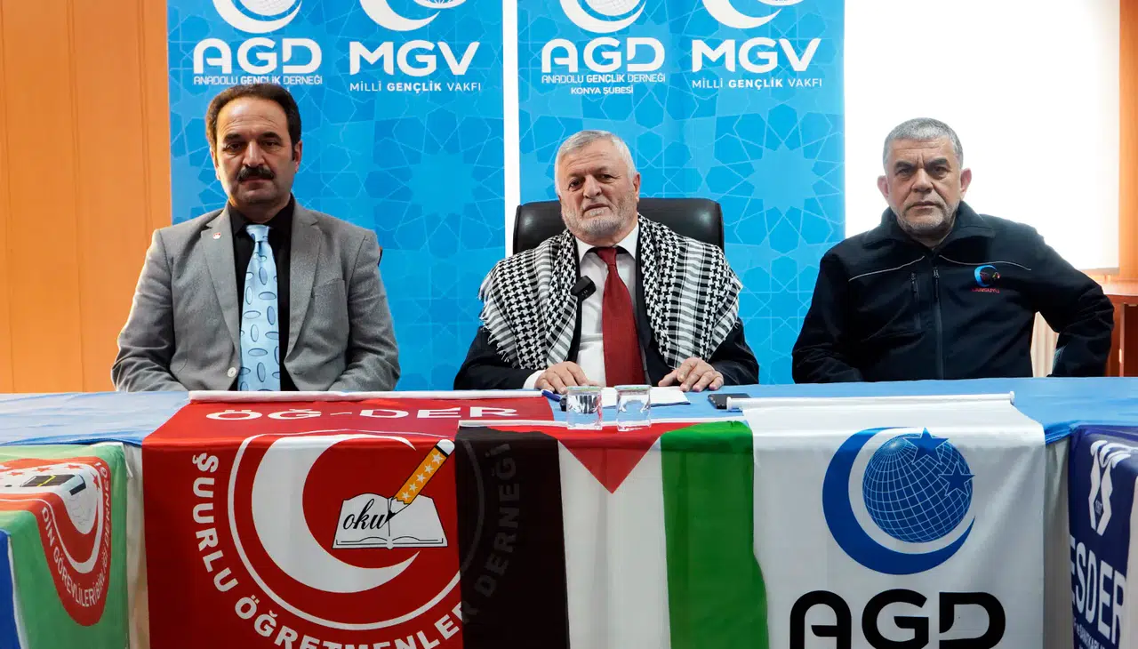 Millî Görüşçü Kuruluşların (MİLKO) ortaklaşa düzenlediği “Sözde ateşkese rağmen Gazze-Filistin’de bitmeyen zulüm ve garantörlerin sorumluluğu” konulu basın açıklaması Konya’da gerçekleştirildi. AGD Konya Şubesi’nde düzenlenen programda platform adına açıklamayı Şuurlu Öğretmenler Derneği (ÖĞ-DER) Konya Şube Başkanı Yavuz Aydın yaptı.
