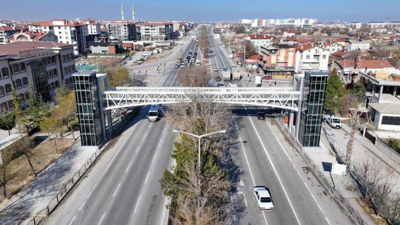 Konya Büyükşehir Belediyesi, Adana Çevre Yolu üzerindeki Yaşar Doğu Yaya Üst Geçidi'ni metal bir TIR'ın çarpması sonrası yeniden inşa ederek hizmete sundu.