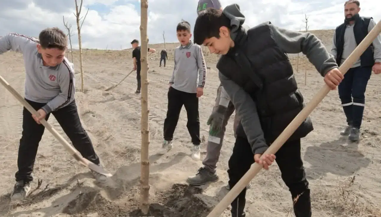 Konya’nın Karapınar ilçesinde ağaçlandırma çalışmaları aralıksız devam ediyor. İlçenin doğal alanlarından Acıgöl çevresinde düzenlenen fidan dikim etkinliğinde, ilçe yöneticileri, öğretmenler ve öğrenciler bir araya gelerek yüzlerce fidanı toprakla buluşturdu.