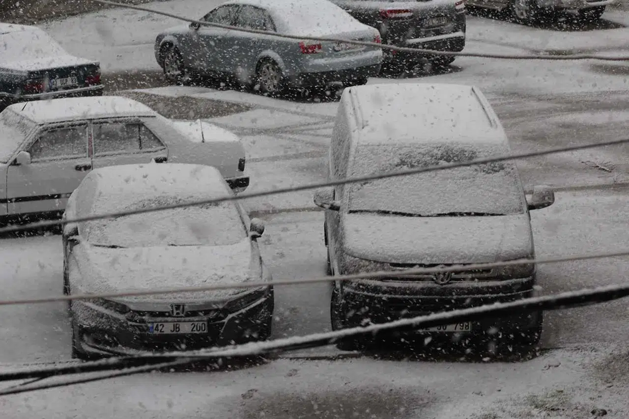 Karapınar'da sabah saatlerinde başlayan yağmur yağışı yerini kar yağışına bırakarak etkisini artırdı. İlçe, beyaz bir örtüyle kapladı.