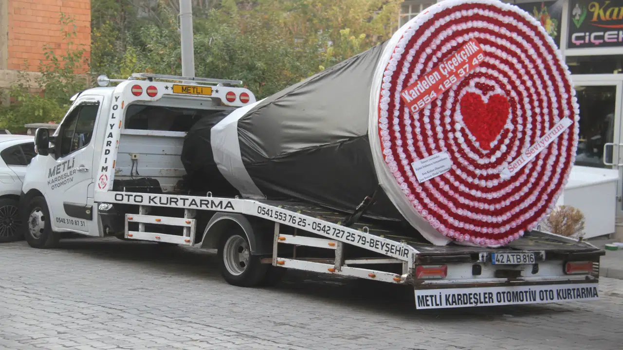 Çekici üzerinde sergilenen dev çiçek buketi tamamen yapay gül malzemesinden oluşturuldu ve çekici boyutlarına göre tasarlandı. 4,70 metre uzunluğunda ve 2,50 metre enindeki buket, hem iş yerinin önünde hem de Beyşehir Gölü kıyısındaki festival alanında sergilenerek büyük ilgi topladı. Projenin yapım süreci üç gün sürdü ve sadece ön demirleri başka bir yerde büküldü.