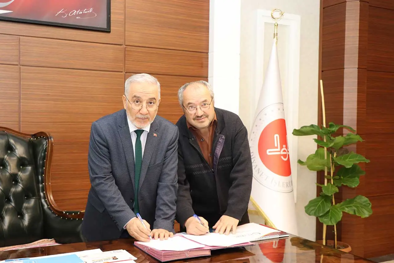 Hazırlanan protokol, Halil Taş ile Saraçoğlu Hz. Ebubekir Camii ve Kur’an Kursu Yaptırma Yaşatma Derneği Başkanı Muzaffer Küçükçetiner tarafından imza altına alındı.