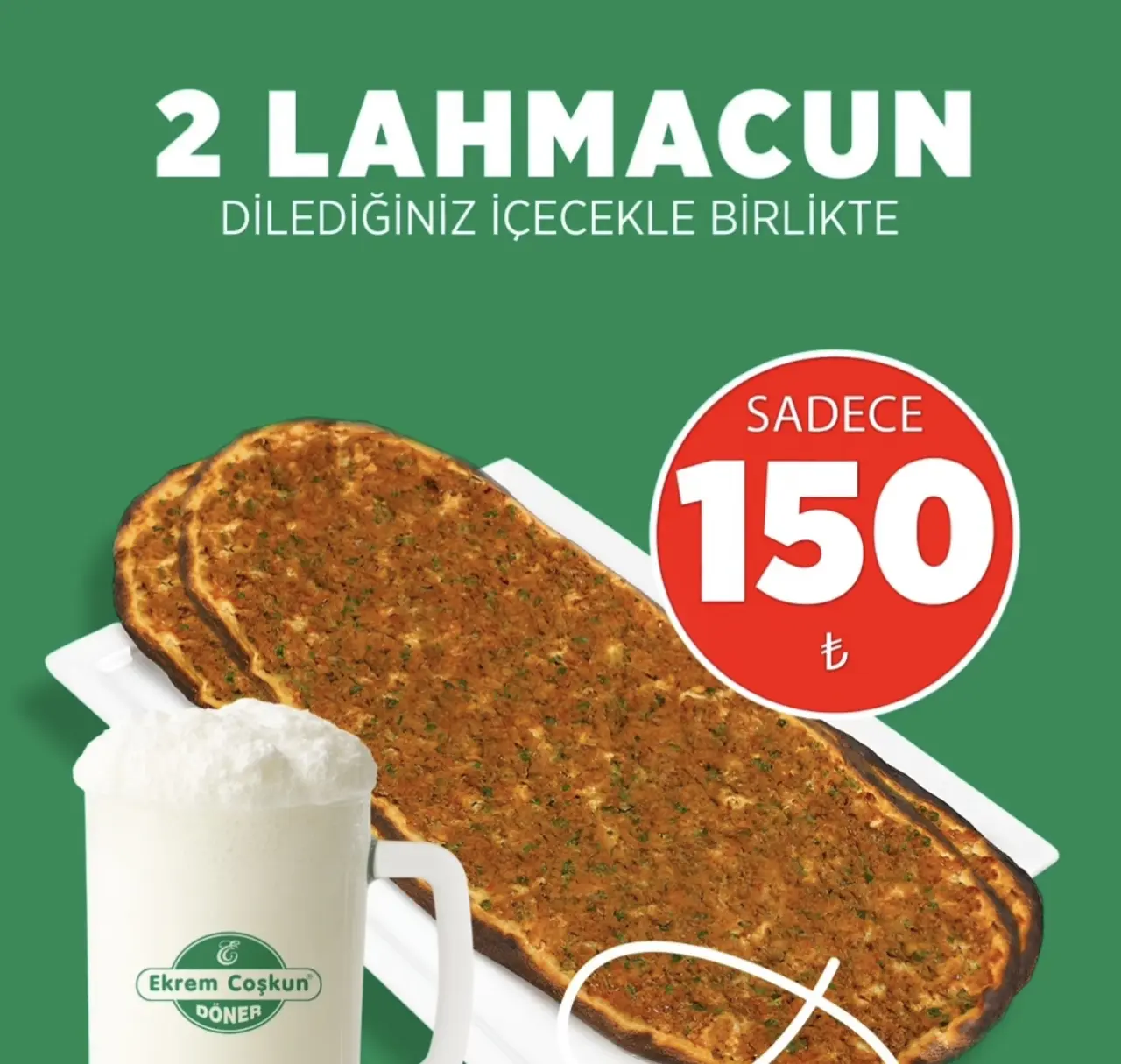 2 adet lahmacun ve istenilen içecek 150 TL,